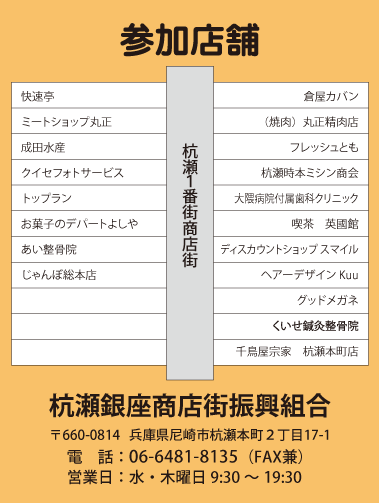 杭瀬の商店街を多くの方に知っていただき、そして訪れていただくため、杭瀬銀座商店街振興組合が店舗と連携して、商店街をめぐるスタンプラリーを実施。